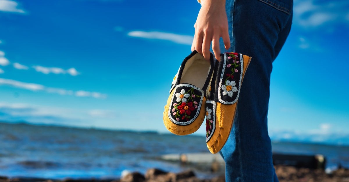 Mocassins en daim vert à perles et à fleurs pour femmes